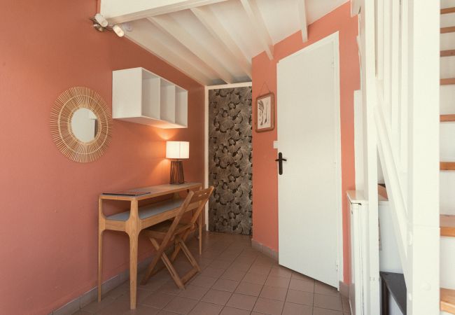 A pocos pasos de la Laguna, ubicada en la residencia "Le Vacoa", cómoda habitación en el escenario en dùplex , con su baño y aseo.